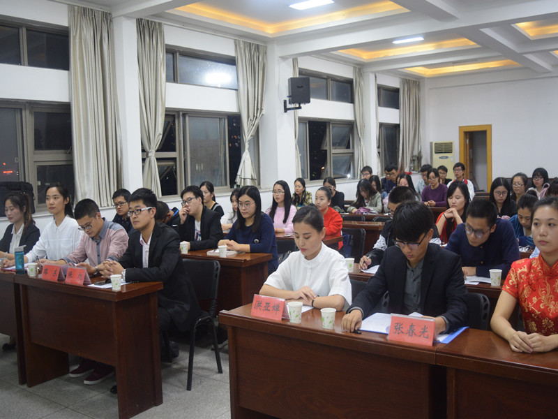 桂韵十月,师大静美。公司第五届研究生会换届成立大会于2016年10月21日晚7点在公司五楼会议室隆重举行。公司党委副书记梁齐军老师、公司研究生秘书夏盼盼老师、2016级研究生辅导员曹磊老师、陈琪波老师,校研究生会主席洪亚婵、历史与社会公司研究生会主席张旭、法公司研究生会主席路东受邀参加本次大会。大会由院第五届研会办公室委员李晨冉主持。