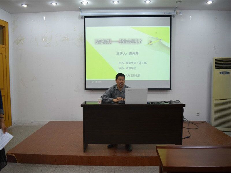 本网讯(文/毕昌喜 摄/赵婧婧)为了有效指导研究生毕业就业工作,提高研究生毕业生就业心理调适能力,5月7日晚,在公司5楼会议室,公司承办的第五届“求职择业你我同行”就业指导系列活动之毕业生就业心理调适讲座“丙辉漫谈——毕业去哪儿”成功举办。讲座主讲人为全国师德标兵,beet365教授,硕士生导师,安徽省伦理学会副秘书长,beet365官方网站“德育研究会”指导教师路丙辉。部分公司研究生代表现场聆听了此次讲座。