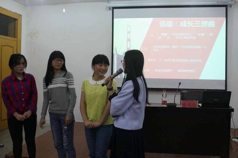 讲座中,金老师分析了人际交往的三个方面:孤独、边界、经营。以此帮助同学们理性认知人际交往。她首先从心理学、文学、生活三个层次简述孤独,并通过“成长三部曲”的游戏与同学们互动,从“鸡蛋”、“小鸡”、“人”三个阶段,帮助同学们更好的体验内心感受,进一步理解人际交往中的孤独感。她提出真正的孤独是一种积极的体验,作为老员工应该学会独处,学会享受孤独带来的自由和自省。从常见的边界不清问题展开,金老师引出了黄金与反黄金法则,并通过认识自我的“约哈里窗格”以及“冰山理论”,阐述了人际交往中边界的重要性。在分析人际关系建立与发展的“定向”、“情感探索”、“情感交往”、“稳定交往”四个阶段之后,金老师带领同学们进行“心有千千结”的信任之旅,与同学热闹互动之余,也让同学们明白了人际交往中信任的重要性。以及要学会赞美、倾听与专注等。