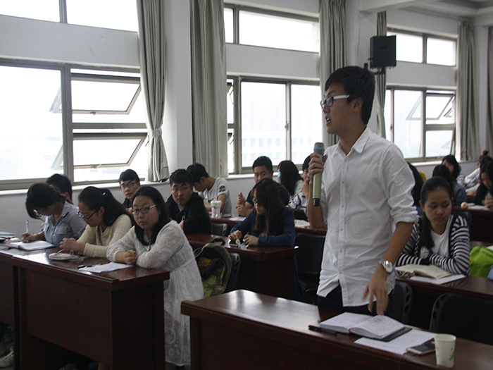 首先,他在第一章“义”与“君子”中向大家阐释了“君子”的定义。臧宏教授指出“君子”是相对于“小人”讲的,但他否认二者以地位或道德划分,他认为“君子”与“小人”本质是思维方式上的区别。随后,臧宏教授针对此具体加以解释,尤其针对“见得思义”提出了深刻的见解。接着,在第二章“义”与“上”中他道出“小人哉,樊须也”的真正含义,以及“上”即与天道合一的领导者,“礼”、“义”、“信”并非多数人所言的道德规范,而是大系统宇宙运动的秩序性和具体事物中所包含的天道。在“义”与“知”中,臧宏教授重点解释《论语?雍也篇》里“务民之义”的“义”和“敬鬼神而远之”的“鬼神”。他指出“义”是良知, “鬼神”是不知,与天道相同不为人所知。最后,臧宏教授根据同学们“君子与小人的关系可否和好人与坏人的关系等同”、“能否把‘君子和而不同,小人同而不和’作为评论‘义’的标准”、“敬远鬼神是否与宗教信仰冲突”三个问题进行详尽的解释。