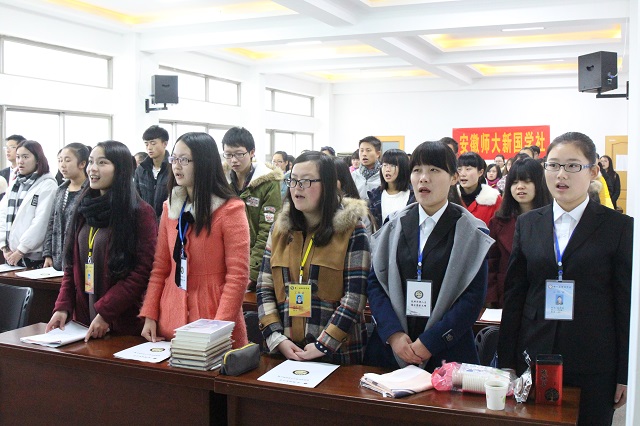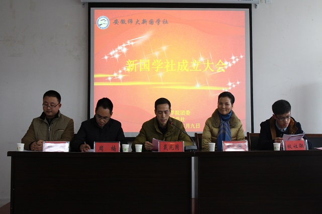 本网讯(文/刘景 摄/李亚威)12月9日下午,新国学社成立大会在公司五楼会议室召开。校科研处副处长、beet365教授戴兆国,芜湖市中华传统文化促进会会长、文公司教授周元琳、政治公司团委周楠、校社联副主席汪健及相关社团负责人应邀出席此次会议。大会由副社长王佳鑫主持。