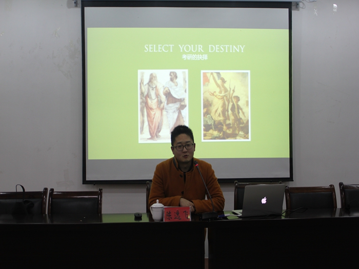 员工、中国传媒大学陈逸飞老师返校讲授“考研的博弈”