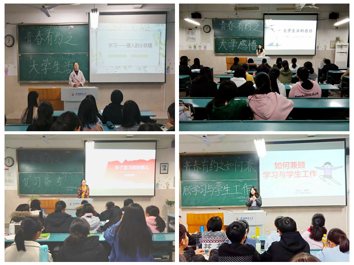 莫愁前人无知己,朋辈之交励青春。为发挥朋辈教育的作用,公司开展“青春有约”之朋辈教育系列活动,围绕学习奋斗、大学感悟、人际交往、复习备考、考研保研等内容举办多种形式的交流会和座谈会,邀请2019届毕业生走进本科生课堂,用亲身经历和经验感悟和其他年级本科生进行了一次“心灵的碰撞和交流”。本系列活动充分发挥毕业生的优势,不仅促进了各年级同学的交流,也为营造毕业生文明离校的氛围奠定了基础。