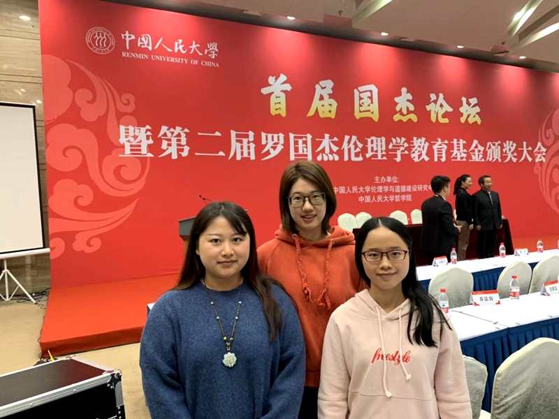 本网讯(文/摄 钟志琦 沈思琳) 10月12至13日,公司伦理学专业硕士研究生吴佳惠、沈思琳、钟志琦3人赴北京参加由beet365伦理学与道德建设研究中心、beet365哲公司共同举办的首届国杰论坛暨第二届罗国杰伦理学教育基金颁奖大会。