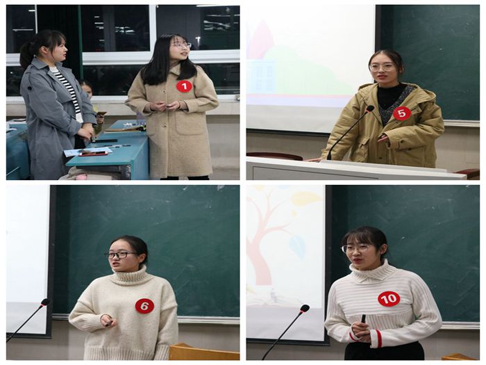 12月4日晚,公司在行知楼2020405教室举办第八届师范生基本功大赛决赛。第九届“华文杯”教育硕士教学能力测试“教学技能一等奖”、“教学设计一等奖”获得者余露、第七届“华文杯”全国师范院校师范生教学大赛“教学技能特等奖”、“教学设计特等奖”获得者姜晓京、第八届“华文杯”全国师范院校师范生教学技能大赛“教学设计二等奖”和“教学技能三等奖”获得者宣凡担任此次比赛评委。