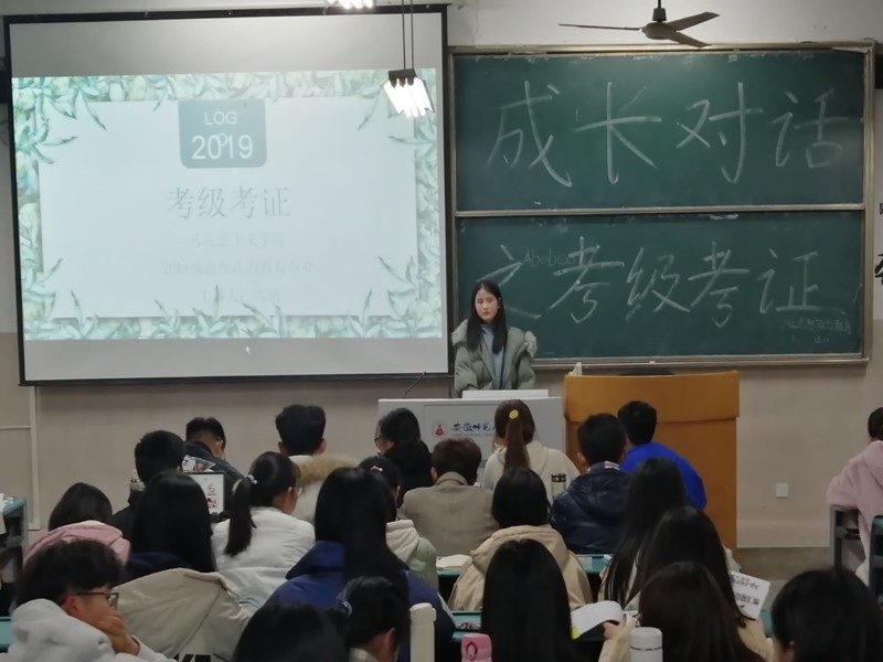 本网讯(文/屠晓 摄/吴雅洁)为了帮助新生同学们进一步了解考级考证的相关内容,12月11日,2019级思想政治教育专业于行知楼2020204教室开展“成长对话之考级考证”主题讲座,本次讲座邀请到2018级思想政治教育专业的迟敏担任主讲人,19级政教专业全体本科生参加。
