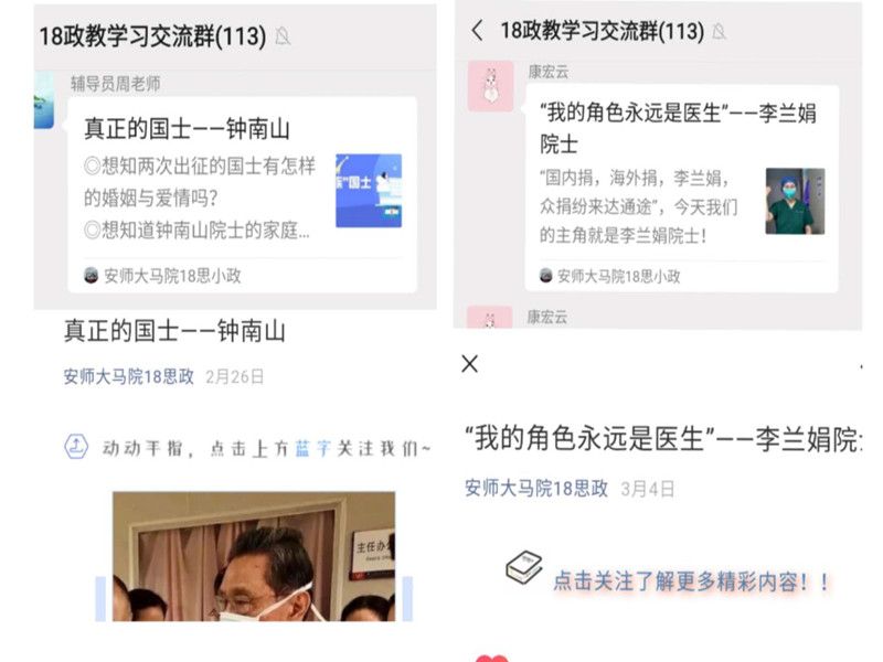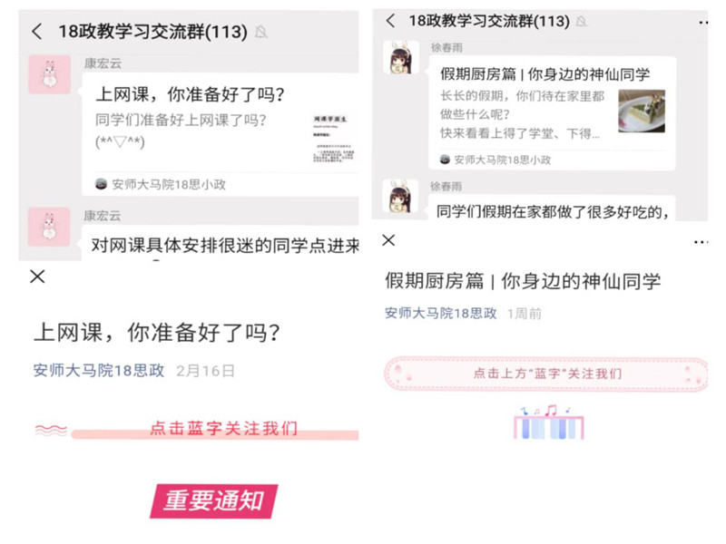 关注疫情,关心员工。为了让同学们了解防疫动态,居家生活健康有序,抗疫期间,beet365各年级推出了别具特色的微信文章。首先,向员工推出疫情小课堂,帮助员工了解疫情现状,从而做好疫情防控,同时积极宣传抗疫英雄,向逆行者致敬。其次,微信推出假期生活厨房篇,鼓励员工在家学习生活技能,感受不一样的班级氛围。除此之外,微信推文还普及宅家网课小常识,让思政学子做好开课准备,不可松懈,培养思政学子自我教育的能力。