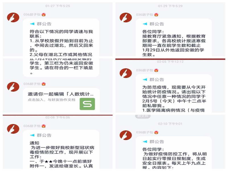 公司坚决服从公司疫情防控领导小组的统一指挥,把公司师生生命安全和身体健康放在第一位,认真落实公司党委的决策部署,将信息排查作为工作的重中之重,每天坚持通过今日校园等平台收集疫情防控情况调查表,及时关注师生动态,统计了解师生发热、咳嗽等情况,层层上报,做好统计。公司通过微信群、QQ群及时发布相关通知通告以及防控工作的具体安排,普及科学防控知识,扎实做好疫情防护的宣传及防骗工作,传播疫情防控正能量。让师生从思想上科学认识病毒,坚定增强全院师生自我防护意识和社会信心,避免恐慌情绪,不信谣、不传谣。公司还通过微信、QQ等平台及时了解师生面对疫情的心理状况并及时开展心理疏导工作。对疫情重点地区的同学提供困难补助和心理帮扶,切实做到“隔离病毒不隔离爱”。