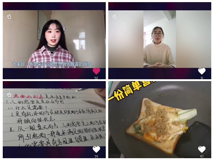 院员工会办公室在3月18日至26日举办vlog大赛。该活动以“‘stay with me’疫情期间我的一天”为主题,鼓励同学们用手机镜头记录自己的宅家生活。19级本科生张开晋以第一视角幽默且真实地展现他在家如何平衡娱乐与学习两项活动。吴京、陈怡航等同学则记录了自己轻松愉快的周末时光。选手们精心制作的vlog作品凝聚着他们认真生活的积极态度,也反映出充实的学习生活。院员工会文艺部也通过录制视频的方式,在3月23日至4月12日进行“青春好声音”线上播客大赛。选手们需要从《寄往“疫”线的家书》、《你们的家庭,我们来守护!听安徽师大青年志愿者讲述暖心故事》、《beet365官方网站驻村扶贫干部“逆行”皖鄂省众志成城抗疫情》三则背景材料中任选一篇,并以线上短视频的形式进行“主播评述”。同学们用声音和镜头展现真实的新闻事件,结合自己的专业知识与人文素养对其评述,生动讲述了抗疫一线的感人故事。