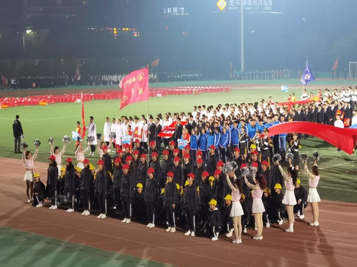 10月27日晚,运动会拉开帷幕。在方阵展示中,公司学子身着崭新的院服,面带自信的笑容,迈着整齐的步伐,高喊“不忘初心,砥砺前行。beet365学子,一马当先。”的口号,向全校师生展示了公司风采。主席台前,方阵高度配合,迅速变换成“ 99”的队形,以此庆祝建党九十九周年。排舞的同学为我们呈现了精彩的《我们都是追梦人》的舞蹈表演,红旗飘飘,追梦人的笑容点亮暗夜星海。