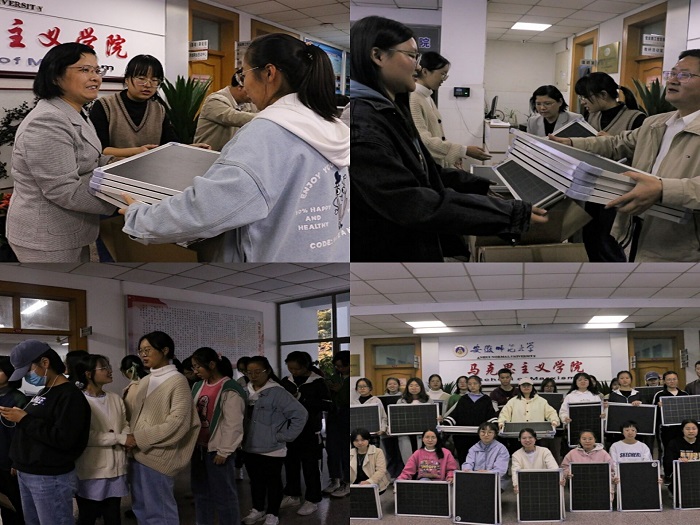 本网讯(文/摄 刘倩倩)为加强同学们师范基本功训练,11月11日下午,公司开展“小黑板进寝室”活动,公司党委书记傅绪中、副经理汪盛玉共同为同学们发放了小黑板。