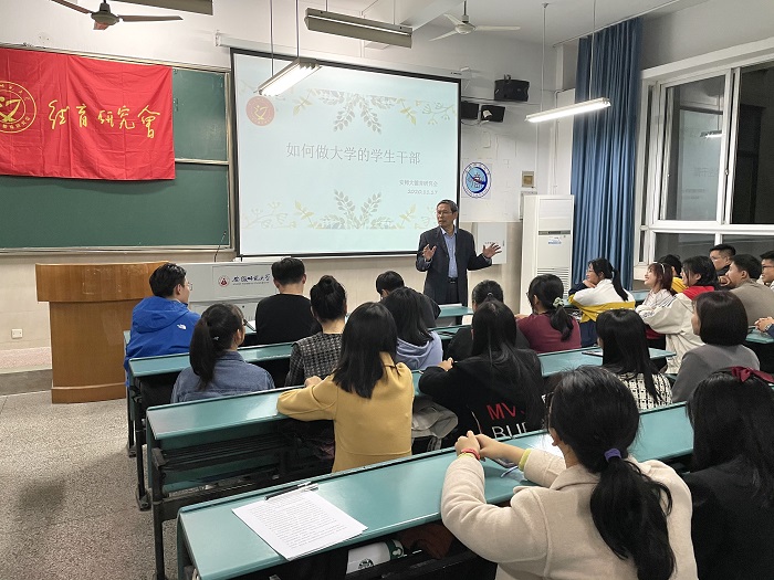 首先,路老师以自己在大学的任职经历开场,表达了自己对员工工作的体悟,唤起了每位同学心中对“员工干部”内涵的思考,他教导同学们,成为员工干部的初衷应该是纯粹的,应秉承着想要做出些什么的理念,在为他人服务的同时,收获自我。