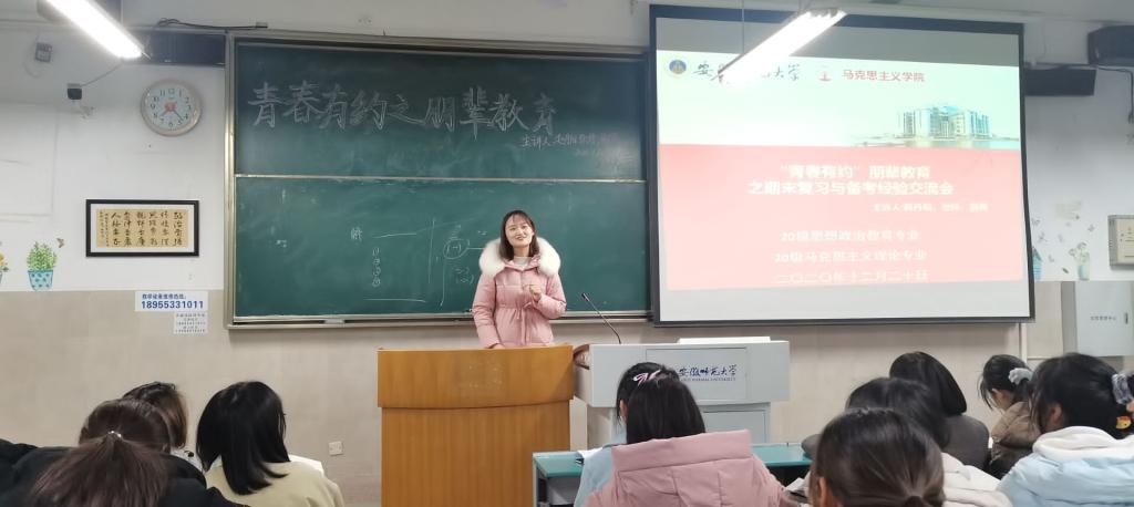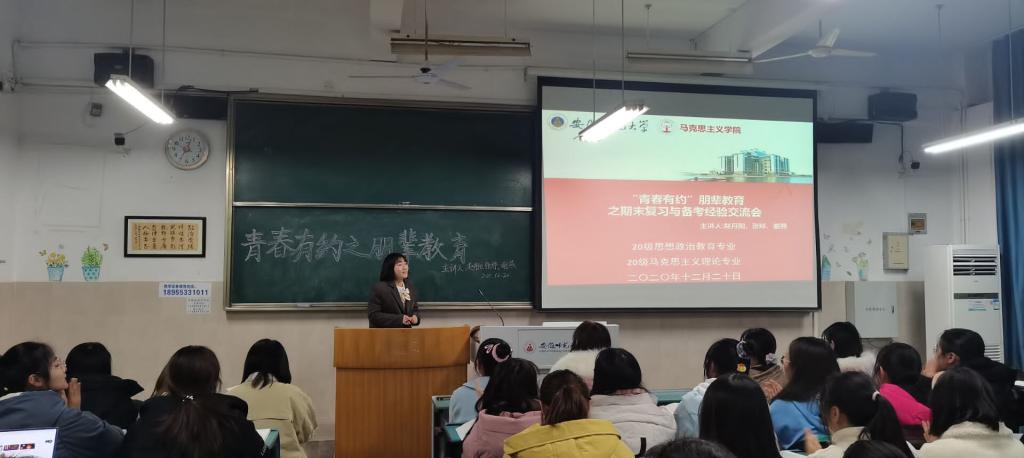 本网讯(文/张媛媛 摄/钱欣彤)为了让大一新生充分了解大学期末考试的特点,做好期末考试复习,取得更好的成绩,12月20日晚,公司举办了“青春有约”朋辈教育之期末复习与备考经验交流会,主讲人为本科毕业班赵丹阳、张婷和谢燕三名学姐,全体2020级新生参加。