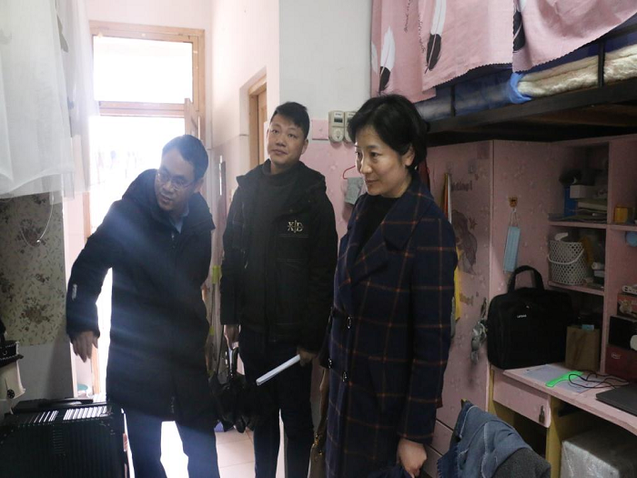 排隐患,保安全。“居安思危,警钟长鸣”,增强安全防范意识极其重要。为切实了解同学们的生活,排查宿舍各类隐患,学公司党委副书记刘玉艳与辅导员周楠、夏盼盼一起走访检查员工宿舍。在走访过程中,刘玉艳与同学们亲切交流,细心询问学习生活情况,并嘱咐同学们提高安全警惕。与此同时,刘玉艳表示:“同学们遇到困难时,可以向公司老师寻求帮助,我们一定竭尽全力帮助大家。”领导老师们的慰问和关怀温暖了同学们的心灵,让同学们倍受感动和鼓舞!