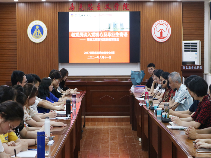 本网讯(文/摄 陈依婷 叶钟昊)6月11日下午,公司关工委老党员与毕业生党员在公司五楼会议室座谈百年党史。院关工委主任、公司党委书记严宏,院关工委常务副主任李廷宪、院关工委成员黄翠华、院关工委副主任、公司党委副书记刘玉艳、副经理汪盛玉出席。2017级思想政治教育专业全体党员参会。