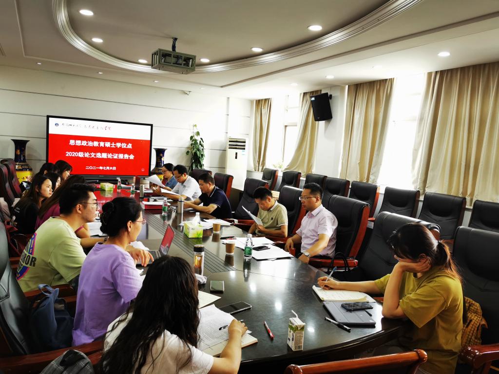 本网讯(文/张超、汪翠萍 图/张超、汪翠萍)7月6日上午8:30,思想政治教育硕士学位点2020级研究生毕业论文选题论证会在公司四楼第一会议室、公司二楼情景模拟实验室分两组同时进行。第一组由王习胜教授主持,赵冰副教授、陈勇副教授、杨希副教授、叶荣国副教授与会点评。第二组由路丙辉教授主持,赵平教授、王艳教授、牛菲副教授与会点评。2020级思想政治教育方向全体研究生参加。