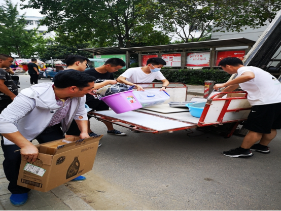 党员模范带头,师生齐心同力。结合党史教育“我为群众办实事”实践活动,公司建立党员志愿服务队,组建党员服务示范点,全院师生党员、入党积极分子主动承担搬迁服务工作,及时汇报并协助处理搬迁工作开展过程中出现的突发事件,让党旗在搬迁工作第一线高高飘扬。公司领导班子、任课老师,亲赴搬迁现场,同员工们一起将沉重行李搬至“新家”。2019级思想政治专业的本科生黄博文感动的说道:”公司的领导和任课老师来帮我们搬行李,大家都非常高兴。各个汗流浃背不说,甚至有的老师戴着手套手都磨破了,我们看着既感动又心疼。“
