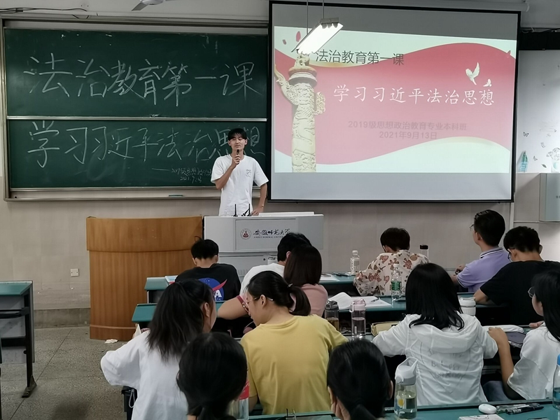 国家法治教育与法治建设任重道远,为增强同学们的法治意识,19政教本科班召开“法治教育第一课——学习习近平法治思想“主题班会。班会结合思想政治教育专业课有关法治方面的内容,从习近平法治思想的主要内容和在实践中深入贯彻习近平法治思想两个方面进行解读。谈到实践方面时,同学们纷纷表示要学法、懂法、守法。此次班会深化了同学们对于习近平法治思想的理解,提高了同学们的思想认识、法律素质和法治意识。相信在之后的学习生活中,同学们可以更好地了解法律,尊法学法守法用法。