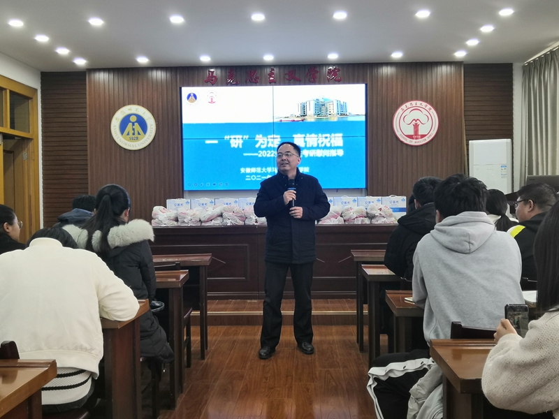 会上,杨希从“识别我的心理健康状态”“考研常见心理症候”“如何进行调试”三个方面分享如何正确应对考研过程中出现的负面情绪,指出要接纳合理情绪、管理非合理情绪、选择适当方法宣泄负面情绪,鼓励同学们在遇到自身难以排解的问题时多向老师咨询以寻求帮助。姚宏志结合自身经历分享考研注意事项,指出在考研冲刺阶段一要有计划、有目标地进行复习,既要做到把书读厚,也要做到把书读薄,建立系统的知识框架;还要保持平常心态,调节情绪,提高效率,将考研坚持到底,同时预祝同学们都能考入理想高校进行深造。严宏鼓励考研同学们要积极冲刺,奋勇拼搏,做到“无奋斗不青春、无磨难不成长、无坚持不胜利”。严宏、姚宏志、刘玉艳、汪盛玉共同为考研员工颁发了慰问品,并亲切的和同学们进行交流。