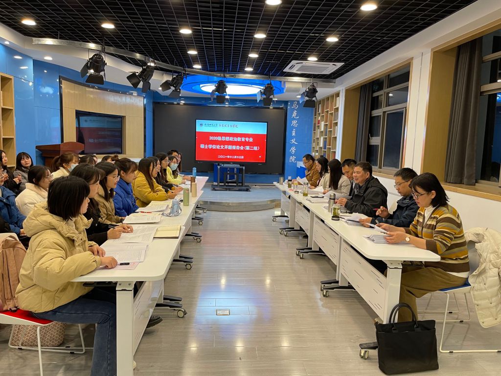 本网讯(文/张超、汪翠萍 摄/张超、汪翠萍)12月12日晚和12月13日晚,2020级思想政治教育专业硕士学位论文开题报告会分两组在公司二楼情景模拟实验室举行。第一组由皖南医公司王军教授、公司路丙辉教授、赵平教授、叶荣国副教授、牛菲副教授与会点评,第二组由安徽工程大学刘德军教授、公司王习胜教授、王艳教授、戴家芳教授、赵冰副教授、杨希副教授、陈勇副教授与会点评。2020级思政专业研究生汇报,2021级思政专业研究生与会聆听。