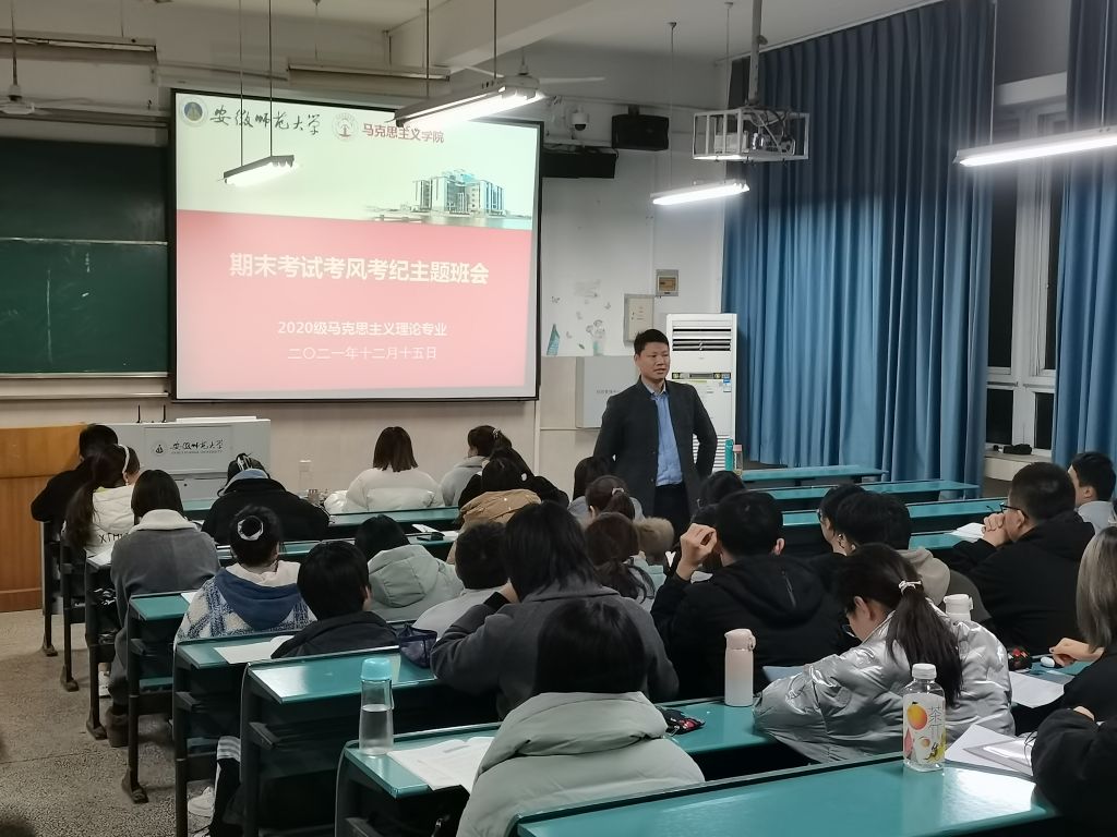 本网讯(文/摄 刘倩倩)12月15日晚,20级马克思主义理论专业在行知楼2020203开展了一次期末考风考纪主题班会,本次班会由辅导员夏盼盼老师主持,全体马克思主义理论专业的同学参加。