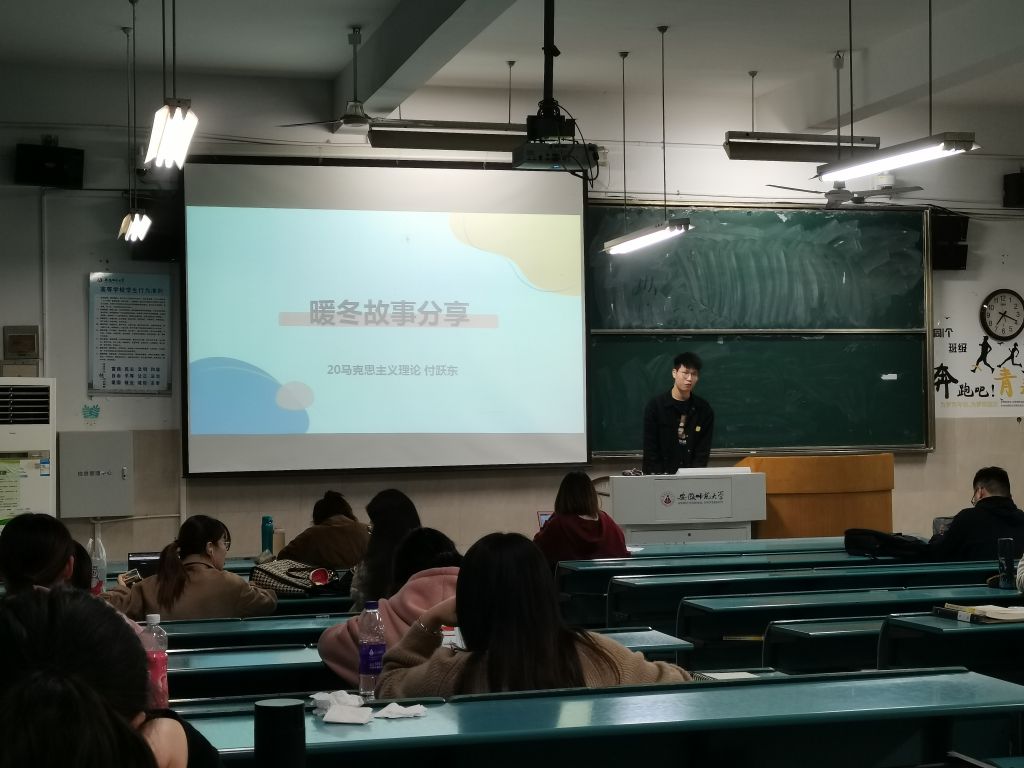 本网讯(文/摄 刘倩倩)3月9日晚,20级马克思主义理论专业本科生在行知楼2020204开展了一次主题为“逐梦暖冬,乐享寒假”的团日活动,本次活动由团支书张子璇同学主持,班级全体同学参加。
