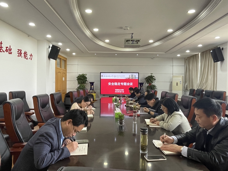 (本网讯 文/摄 薛天然)3月11日下午,beet365在公司四楼第一会议室召开安全稳定专题会议,全面部署公司安全工作。院领导严宏、姚宏志、刘玉艳、汪盛玉、赵冰、李祥兴、余本玉出席会议,院全体辅导员参加会议。