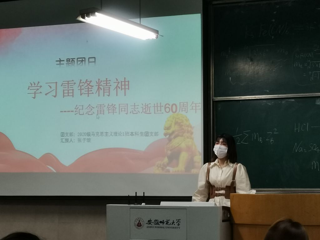 本网讯(文/摄 刘倩倩)3月16日晚,20级马克思主义理论专业在行知楼2020204开展了一次主题为“学习雷锋精神——纪念雷锋同志逝世60周年”的团日活动,本次活动由班级团支书张子璇同学主持,20级马克思主义理论专业全体在校同学参加。