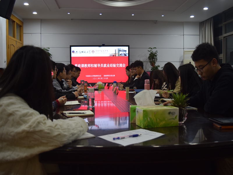 本网讯(文/摄 赵兵)3月27日晚七点,由公司研究生会和思政党支部联合举办的思政课教师和辅导员就业经验交流会在学院四楼会议室召开。本次会议由学术部委员张安琪主持,会议邀请公司团委书记沈镇、文公司本科生辅导员吴佳惠、2019级马克思主义中国化研究方向谢路为同学们分享求职经验。为配合疫情防控需要,本次会议采用线上线下相结合的方式为同学提供参会渠道。