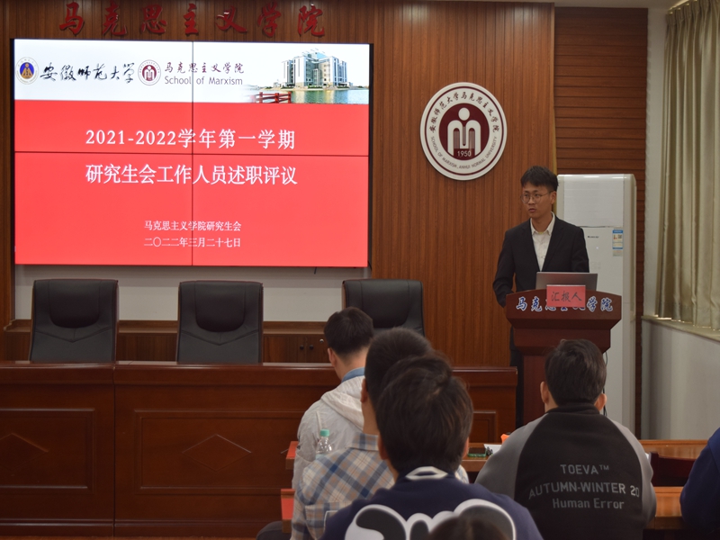 本网讯(文/摄 赵兵)3月27日下午,beet3652021-2022学年第一学期研究生会工作人员述职评议会在公司五楼会议室举行。本次会议由办公室委员陈国伟主持,公司团委书记沈镇、2020级研究生班级班长、团支书、其他班委及各方向专业负责人担任评委,第十届研究生会主席团成员、各部门部长进行述职汇报。