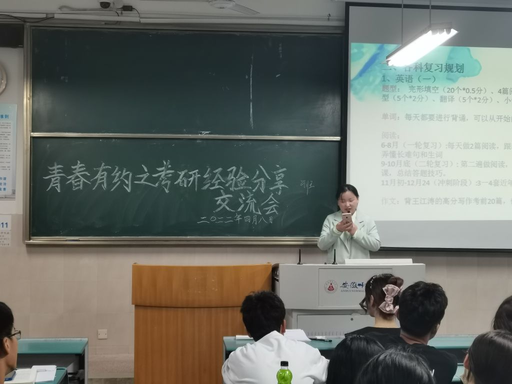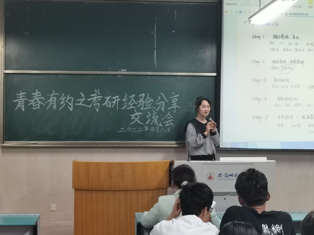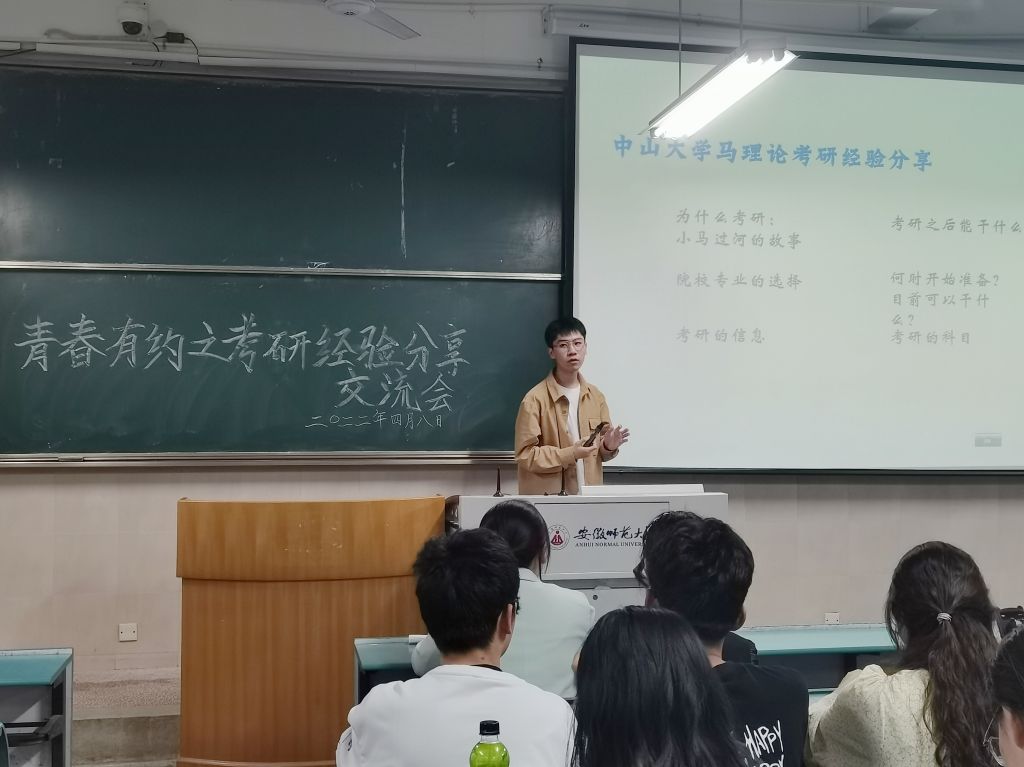 为帮助同学们提前了解考研信息、明确考研目标,20级全体在校本科生于4月8日19:00在行知楼2020203教室开展了第一期“青春有约之考研经验分享”交流会,邀请了2018级思想政治教育专业学长陈德辉、学姐夏思怡和康宏云担任主讲人。