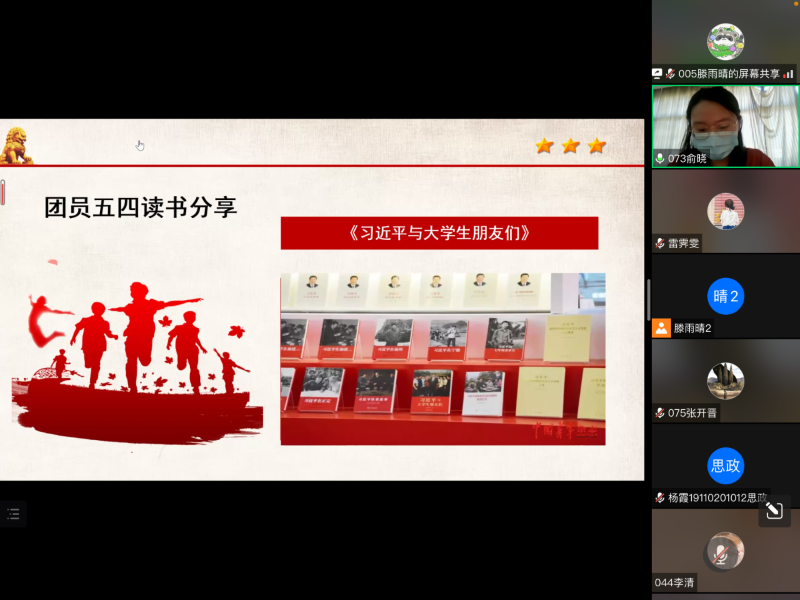 开展团日活动,共谱未来奋斗篇章。5月4日下午,2019级思想政治教育专业本科生团支部召开线上主题团日活动,活动由团支书滕雨晴主持。支部成员通过观看网络接力视频、学习习近平总书记考察beet365重要讲话精神、分享读书心得等方式,进一步了解五四精神,明确自身肩负的责任。在读书心得交流环节,支部成员积极分享观看《习近平与老员工朋友们》与阅读《中国青年运动一百年》的心得体会,纷纷表示青春是挥洒热血的年纪,要奋勇争先、不懈奋斗,积极提升自身专业素养,未来做传播优秀传统文化的思政课教师。主题团日活动的最后,公司团委委员叶欣怡、2021年度优秀团干费常虹做总结发言,鼓励各位同学继承五四传统,发扬五四精神,脚踏实地,习德明理,在社会实践中奉献青春力量。