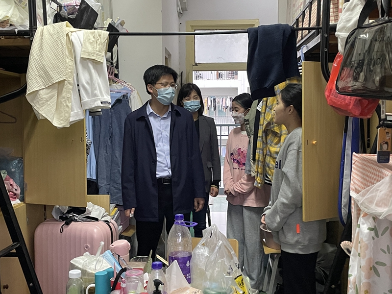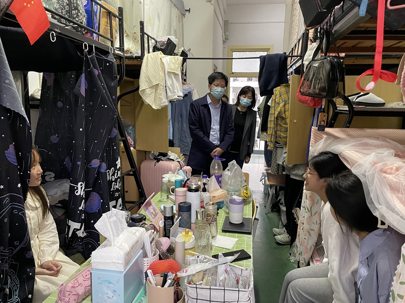 晚餐会后,严宏、刘玉艳和沈镇走进员工宿舍,实地了解同学们的学习和生活情况。每走进一个宿舍,严宏和刘玉艳都会和同学们亲切的交谈,提醒同学们要谨防诈骗,随手锁门,并注意保管好个人财物以及疫情期间的个人人身安全与寝室卫生的管理,并叮嘱同学们遇到困难和问题可以及时联系辅导员和公司。