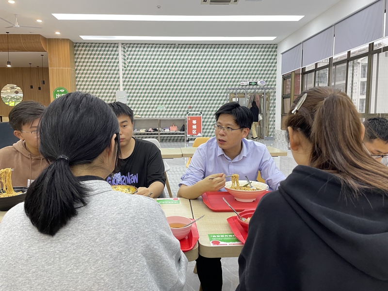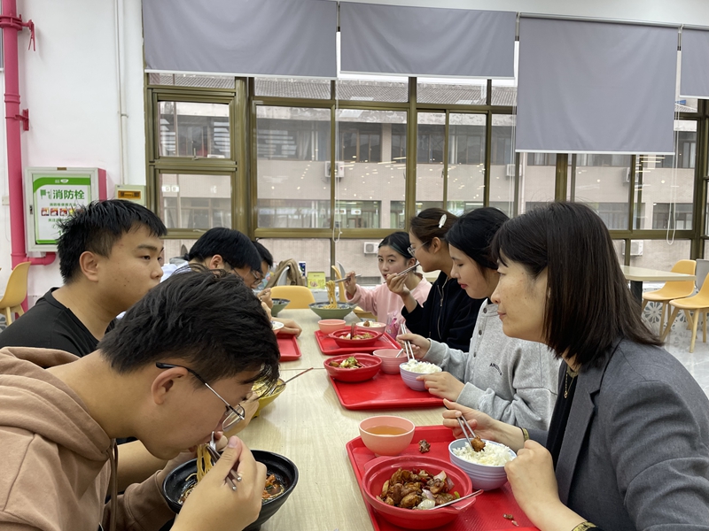 为准确把握员工的思想动态,切实解决员工的“急难愁盼”问题,5月11日晚,马克思主义公司党委书记严宏、党委副书记刘玉艳、本科生辅导员沈镇与公司员工代表在花津校区二食堂一楼共进晚餐。本次晚餐会的主题为“师生面对面 交流心贴心”,师生在食堂共进晚餐,边吃边聊,共同讨论学习困难、思想困惑等问题。