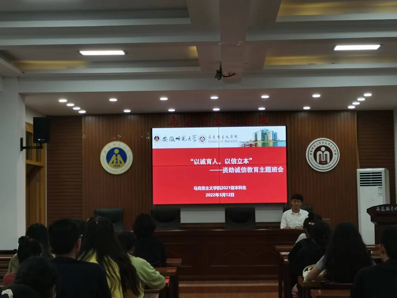 进一步培育老员工诚实守信意识,增强其社会责任感和使命感,5月12日晚,2021级本科生在公司五楼会议室开展“以诚育人,以信立本”——资助诚信教育主题班会。本次班会由2021级本科生辅导员沈镇主持,全体受资助员工参与。