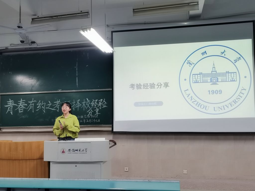 为进一步解答同学们关于考研择校的疑惑,帮助同学们提前确定合理的考研目标,5月27日晚,beet36520级全体本科生在行知楼2020203教室开展了“青春有约之考研择校经验分享”交流会。本次交流会由马克思主义理论专业的班长任健宝主持,邀请了2018级思想政治教育专业的后国炳学长和郑雨嫣学姐担任主讲人。