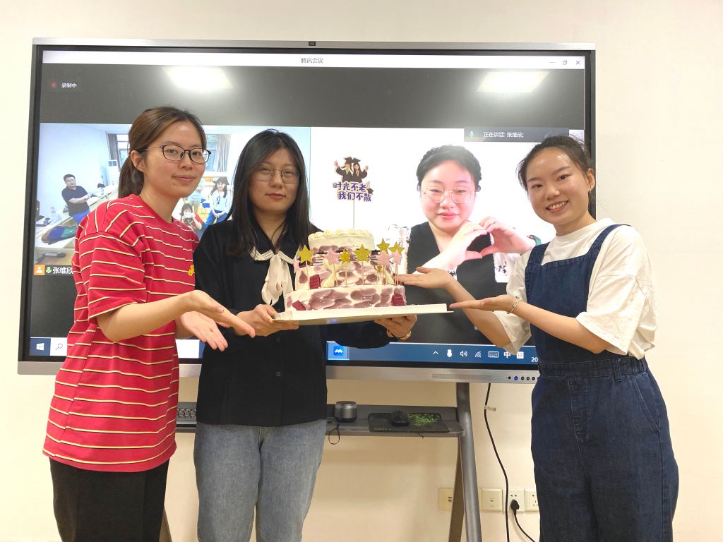 会上,2020级和2021级硕士研究生依次发言,真挚的话语、充沛的感情表达出感谢、不舍和祝愿,情之所至,一些同学不禁潸然泪下。四位毕业生也进行了发言,感恩老师们的谆谆教诲和悉心栽培,怀念在师大beet365共同学习生活的日子。老师们表达了对于2022届毕业生的祝愿与期望。孙辉对四位毕业生表示祝贺,祝愿大家都能过诗意的生活,并希望师弟师妹都能以师姐们为榜样,以认真的态度坚持读书学习。单传友在祝贺之余指出,我们在学习、生活、工作中,都应该学习师姐们坚持不懈的精神,朝着自己的理想不懈奋斗。马克思在1837年11月10-11日给父亲的信中说道:“生活中往往会有这样的时机,它好像是表示过去一段时期结束的界标,但同时又明确地指出生活的新方向。”余在海引用这句话作为总结,并指出,马克思主义哲学硕士点就像一个大家庭一样,老师和员工如家人一般相亲相爱、团结一心,三年的硕士生涯让大家有了很大的成长,也促进了老师的成长和改变,他对同学们的真诚表示感谢,并祝愿毕业生能够选择适合自己的生活节奏和生活方式,让自己的生活带上哲学的味道。发言结束后进行分蛋糕的仪式,余在海将祝福牌插在送给毕业生的蛋糕上,并点燃蜡烛,浓厚热烈的师生情谊、一脉相承的马哲精神便如同一块块蛋糕一般,传到了每一个人手中。