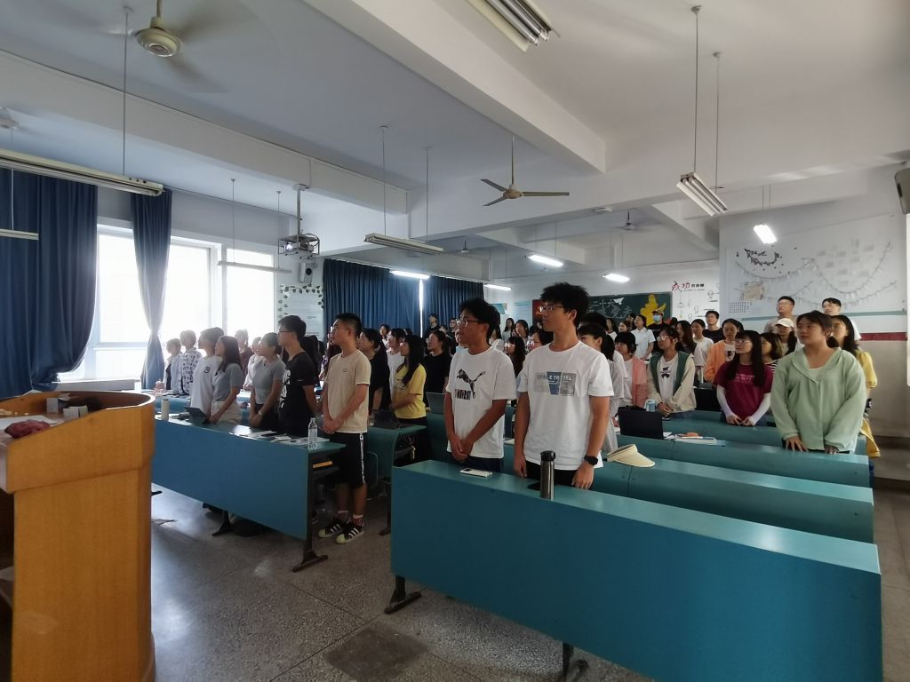 谢颖婕同学带领大家学习了《中华人民共和国禁毒法》的基本内容,并集中观看禁毒宣传公益短片《青春不是挥霍的筹码》、《别让“我以为”变成“我后悔”》等,加深了同学们对于吸食毒品危害性的认识、增强了同学们抵制毒品的责任心与使命感。随后,同学们全体起立,共同演唱禁毒歌曲《生命》,以悠扬的歌声发起禁毒倡议。