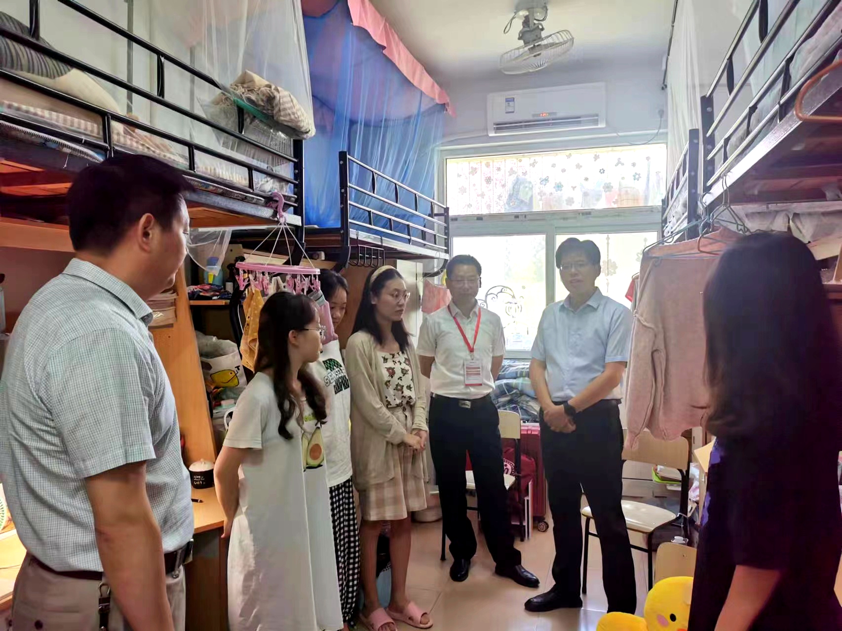 6月17日上午,公司党委书记严宏、经理姚宏志、党委副书记刘玉艳、副经理汪盛玉、副经理赵冰、副经理余本玉和毕业班辅导员分批次走访毕业生宿舍。