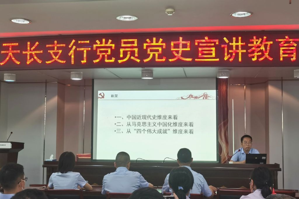 下午五点在中国农业银行天长市支行的宣讲受到了对方党委的高度重视。纪委书记茆军、副行长许新蓓等支行领导老师,以及支行机关全体党员、各网点不当值党员参加了本次宣讲活动。