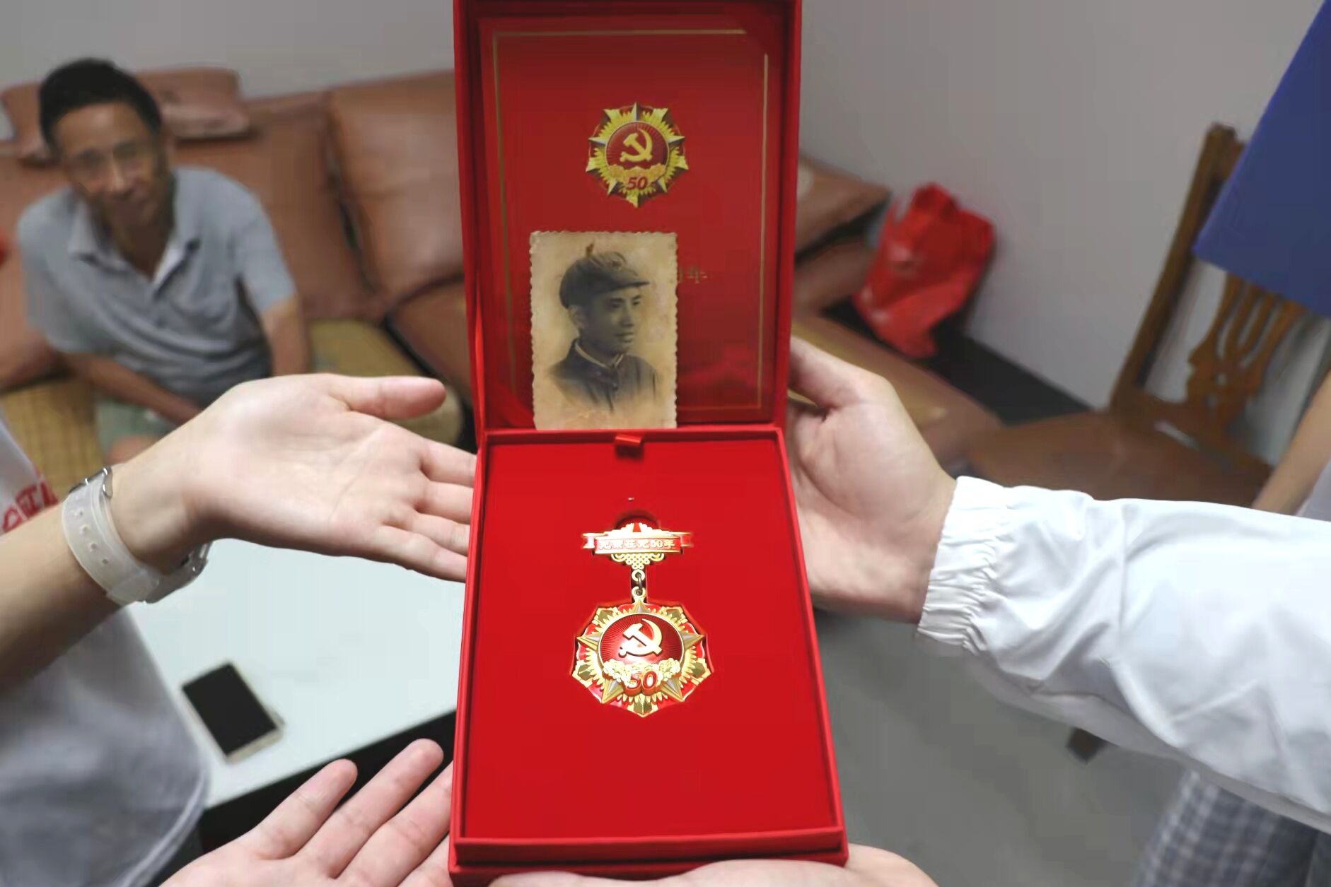 刘培礼爷爷小心谨慎地从房间中拿出了一个礼盒,上面赫然排列着几个大字“光荣在党50年”纪念章。在场人员无不为之震撼,油然而生一股敬意。刘爷爷戴上纪念章时,难掩嘴角的笑意和兴奋之情。据刘爷爷的讲述,早在1963年刘爷爷就积极响应了国家的号召入伍参军。回忆起参军的那段时光,爷爷说道,在军队中最锻炼的就是一个人的心性和意志,日复一日的艰苦训练和各种各样的执勤任务不仅锻炼了他的意志和品格,也促进他的不断成长。每次执行任务时他都集中精力,不敢松懈。在部队中的工作、生活不断地磨练和培养着刘爷爷的党性,在参军的第四个年头他如愿递交了入党申请书,成为了一名光荣的共产党员。