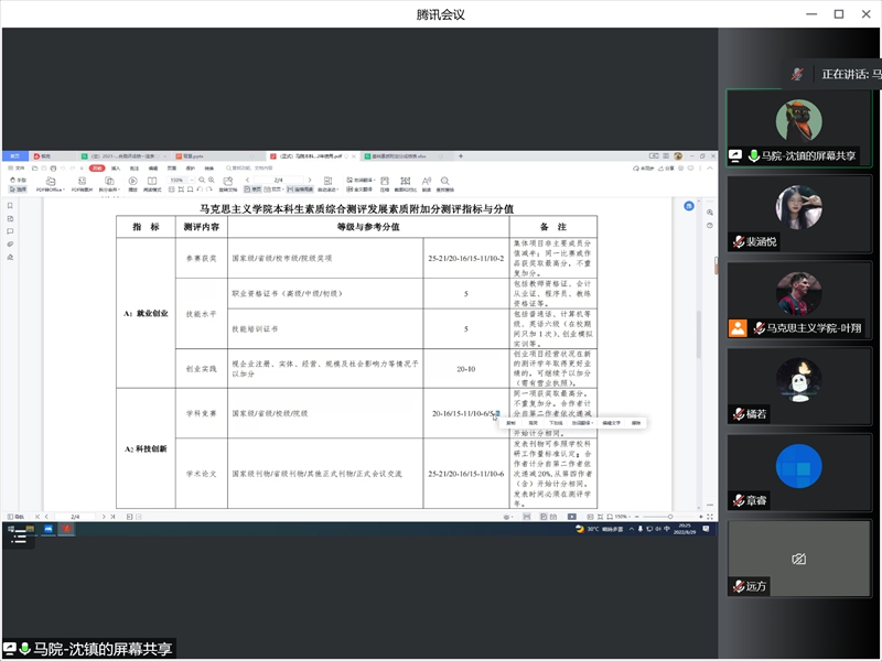 沈镇详细解读beet365素质综合测评实施细则,重点解读了基础素质测评成绩、智育素质测评成绩、发展素质测评成绩情况,尤其是素质综合测评发展素质附加分测评指标与分值进行专题解释。同时,逐一解答了同学们的疑问。