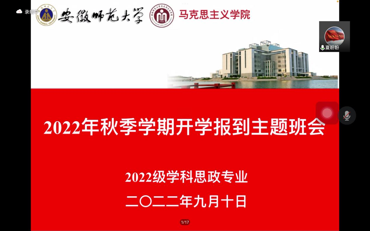 为积极落实公司疫情防控工作,扎实做好疫情防控常态化下新生开学准备。9月10日下午,公司2022级学科思政专业召开了线上主题班会。会议由辅导员夏盼盼主持,22级学科思政专业全体同学参加。