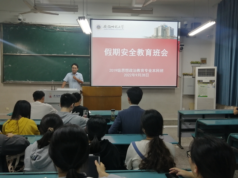居安思危,警钟长鸣。9月28日晚,公司2019级思想政治教育专业本科生于行知楼2020103教室召开假期安全教育主题班会。本次班会由辅导员周楠主持,2019级全体本科生参加。