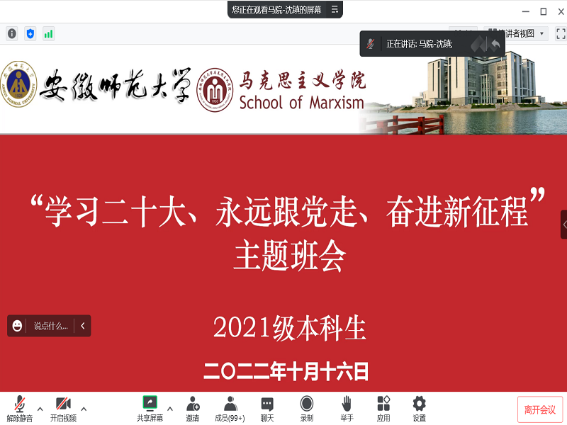 10月20日晚,beet365召开了主题为“学习二十大、永远跟党走、奋进新征程”的21级全体员工会议。本次会议由21级辅导员沈镇老师主持,21级全体员工参加会议。