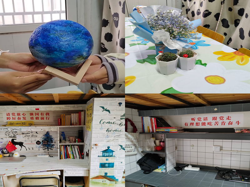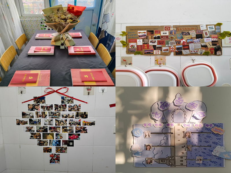 本次比赛以“学习二十大,‘宿’说新‘室’界”为主题,从寝室名称设计、寝室内部设计、寝室设计解说三个部分展开。同学们在此基础上充分发挥想象,以饱满的热情加入到寝室设计之中,共同讨论寝室总体风格、寝室装扮亮点。其中,一幅幅龙飞凤舞的书法作品烘托了浓浓的书香气氛,一朵朵精巧的折纸花为寝室增添了一份明亮的色彩,一张张回忆满满的照片彰显了同学间的和睦友爱,每一处都彰显了寝室独特的氛围与活力。在评比过程中,寝室设计解说员认真地讲解每一处装饰背后的灵感来源、寓意象征。经过评选,45栋129、201寝室为一等奖,45栋124、128、127、214为二等奖,45栋205、215、213、208、209、125、202、204、206为三等奖,45栋223、428分别为最具创意奖和最佳环保奖。