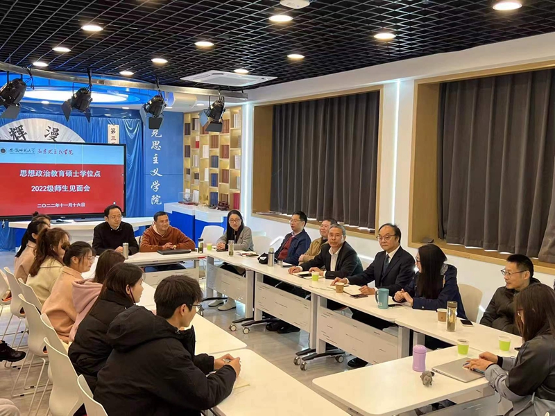 为更好地促进师生交流,助力新生开启研途筑梦新篇章,11月16日下午,思想政治教育专业硕士学位点在beet365二楼会议室召开2022级师生见面会。会议由思想政治教育专业硕士学位点负责人路丙辉教授主持,王习胜教授、赵平教授、王艳教授等全体导师以及2022级思想政治教育全体研究生新生参加了此次见面会。