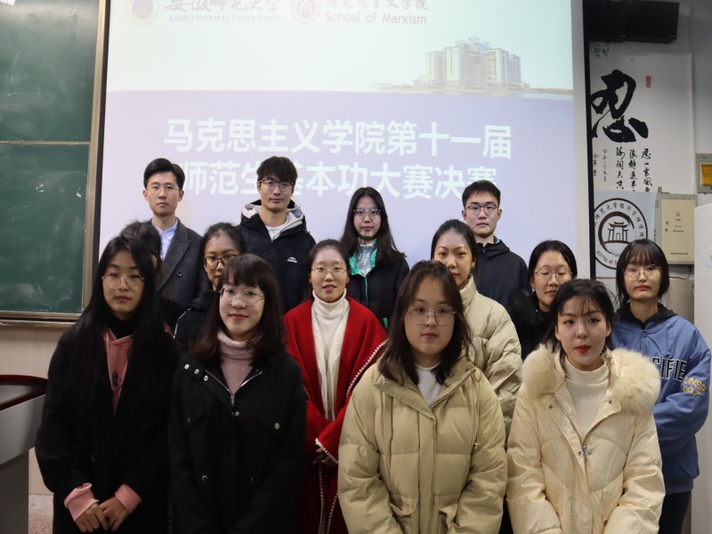 为强化从教本领,展示讲台风采,11月30日下午两点,公司在行知楼2020101教室举办第十一届师范生基本功大赛决赛。本次比赛由员工德育研究会会长,22级学硕班班长吴建军,“田家炳杯”第七届全国师范院校师范生教学技能竞赛国家级三等奖获得者黄博文,“田家炳杯”第八届全国师范院校师范生教学技能竞赛入围决赛选手花群雨,安徽省首届老员工讲思政课皖南片区一等奖获得者张钰珩学长担任评委。员工会工作人员张保民主持比赛,2020级、2021级和2022级部分本科生到场观看。
