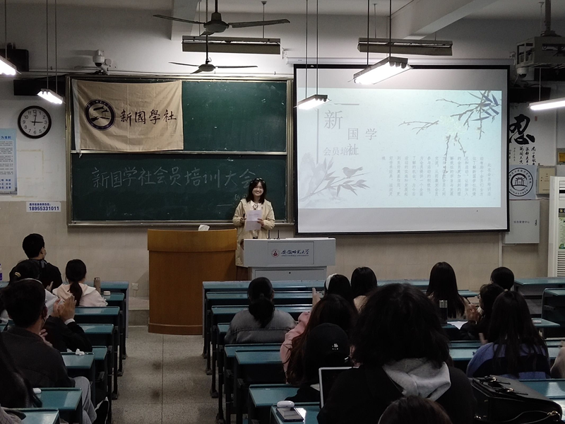 诵国学之经典,承悠久之文化,品思想之精髓,务人生之真谛。为了弘扬中国传统文化,丰富校园文化生活,弘扬公司主旋律,促进成员之间交流,营造良好社团氛围。2022年11月13日下午,新国学社在2020101教室举办会员培训大会,新国学社会长和会员以及各部门部长和理事参与此次会员培训大会。