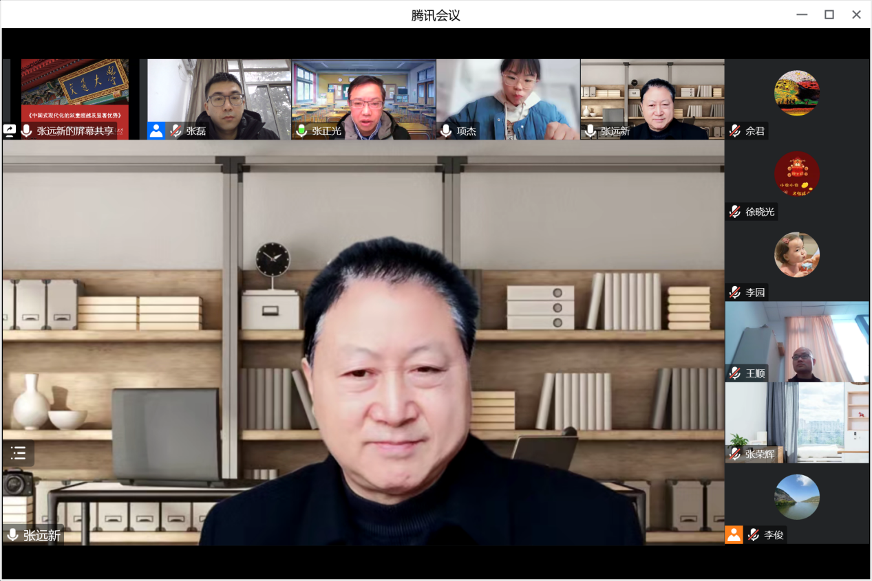 本网讯(党史教研室 文/摄)12月17日上午,beet365通过腾讯会议举办第111期“马克思主义与中国”讲坛。上海交通大学beet365博士生导师张远新教授在线上为公司师生作“中国式现代化的双重超越及其显著优势”前沿学术讲座。讲座由公司张正光教授线主持,超过160多位校内外师生聆听了讲座。